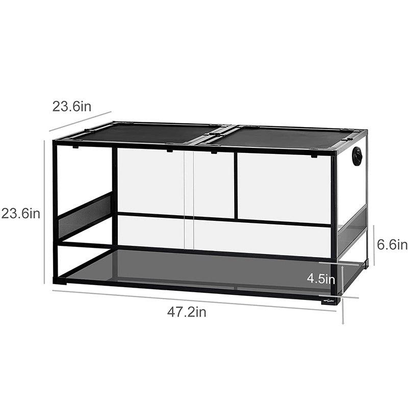 - 【360° FULL VIEW PATENT DESIGN REPTILE TERRARIUM】Made of high quality tempered glass, this 120 gallon terrarium is more sturdy and safe. It is a pleasure to watch and enjoy the activity of animals from the all glass terrarium of 360° full view.(Please do not drill holes on tempered glass, the glass may be crack)