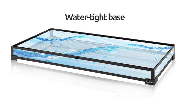 - Waterproof base: The terrarium is water-tight up to the hinged doors, which allows for a “water pool” inside the terrarium, or a natural water feature for an amphibian. Every terrarium is tested for leaks.