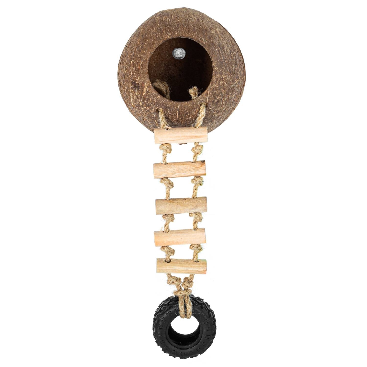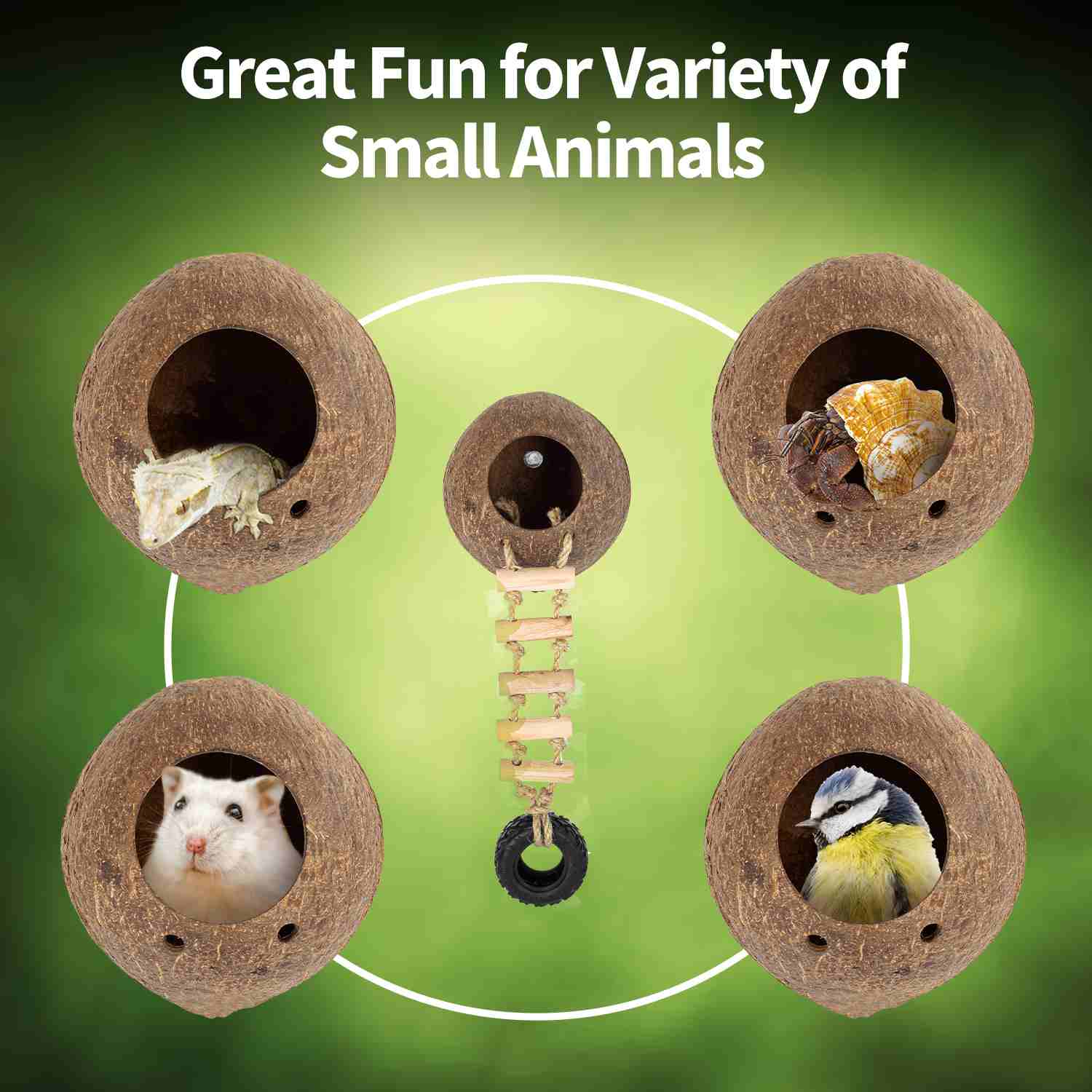 - Reptile Hideout with Climbing Ladder: This hermit crab climbing toy can meet the small animals' nature of hiding and climbing. The coconut shell provide enough room for pets to relax and sleep, the ladder can be used for them to climb and play, release stress.