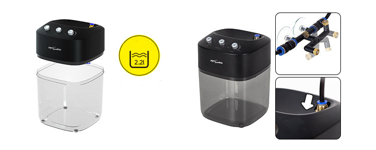 - You can use it without spray nozzle or with 2 spray nozzles for complex reptile habitats
